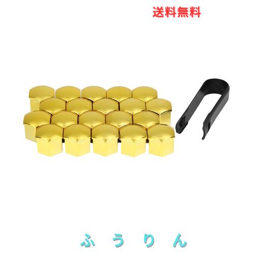 uxcell ホイールラグカバー ホイールナットラグハブカバー 防塵キャップ プラスチック 取り外しツールクリップ付き 20個入り ゴールドト