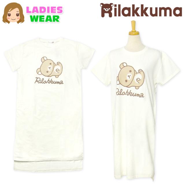 【送料無料】婦人 レディース ミニ裏毛 半袖 ワンピース リラックマ スウェット 段差裾 キャラクタープリント M-L yg-2313a-om【メール便対応】