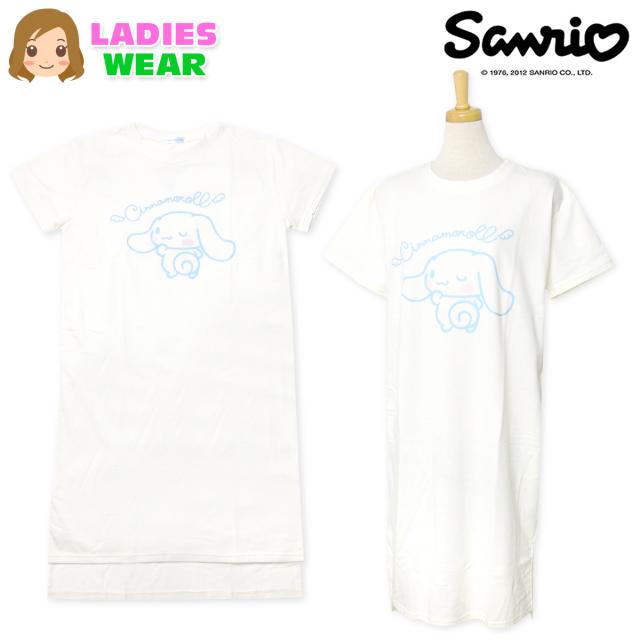 【送料無料】婦人 レディース ミニ裏毛 半袖 ワンピース Sanrio サンリオ シナモロール スウェット 段差裾 キャラクタープリント M-L yg-2316a-om【メール便対応】