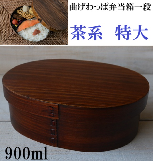 曲げわっぱ弁当箱一段 特大 茶系 食べ盛り 900ml 大きいサイズ お弁当箱 お弁当グッズ 入園 入学 新学期 行楽 運動会 ランチ 木製品曲げわっぱ わっぱ