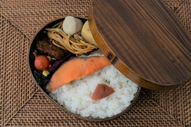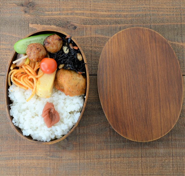 お米から出る水分を、曲げわっぱ弁当箱が程良く吸い取ってくれるため、時間がたって冷えたごはんも美味しく食べることができます。