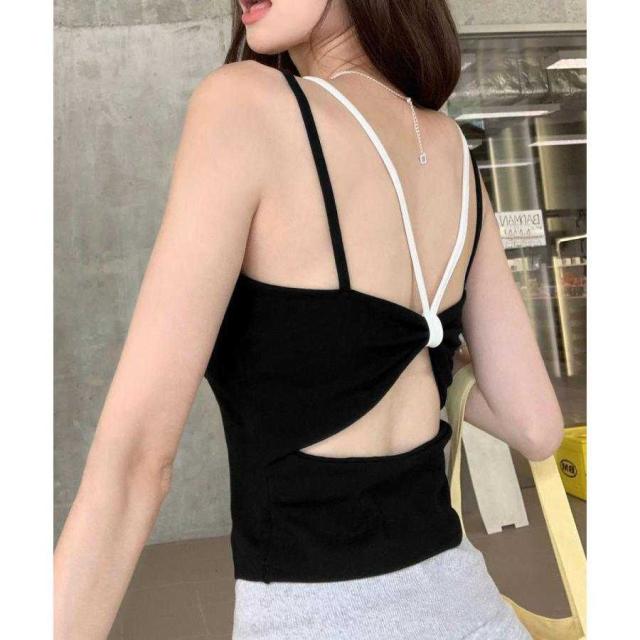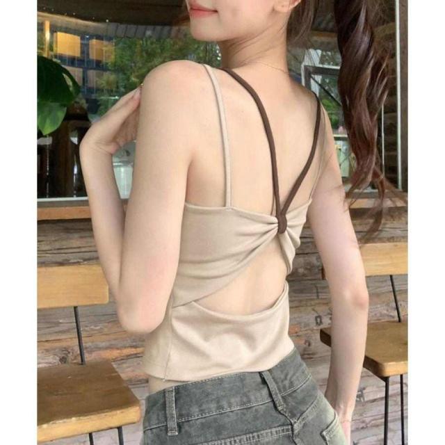 カップ付きで1枚で着られる背中あきデザインのキャミソール
