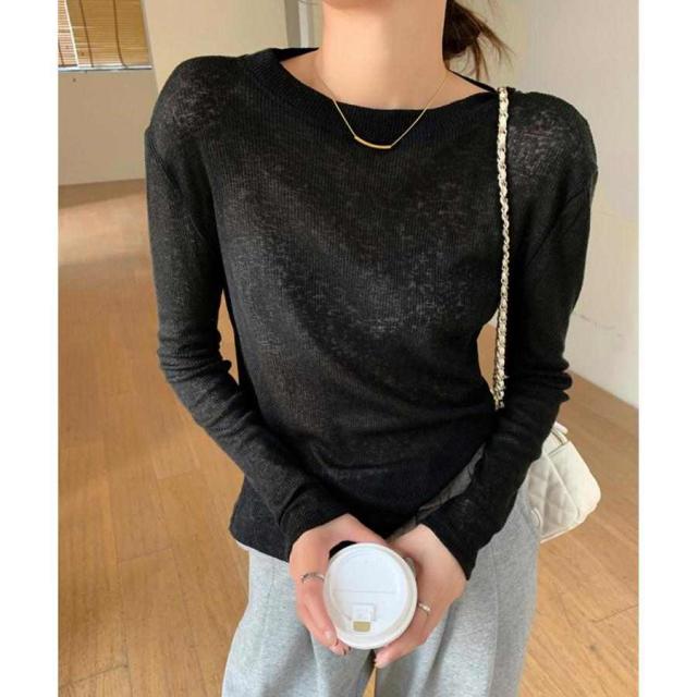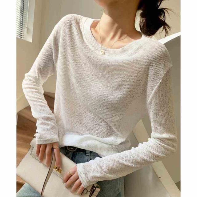 シアーTシャツ ロングTシャツ 薄手 クルーネック お洒落 大人 オルチャン カジュアル フェミニン 通勤 春秋