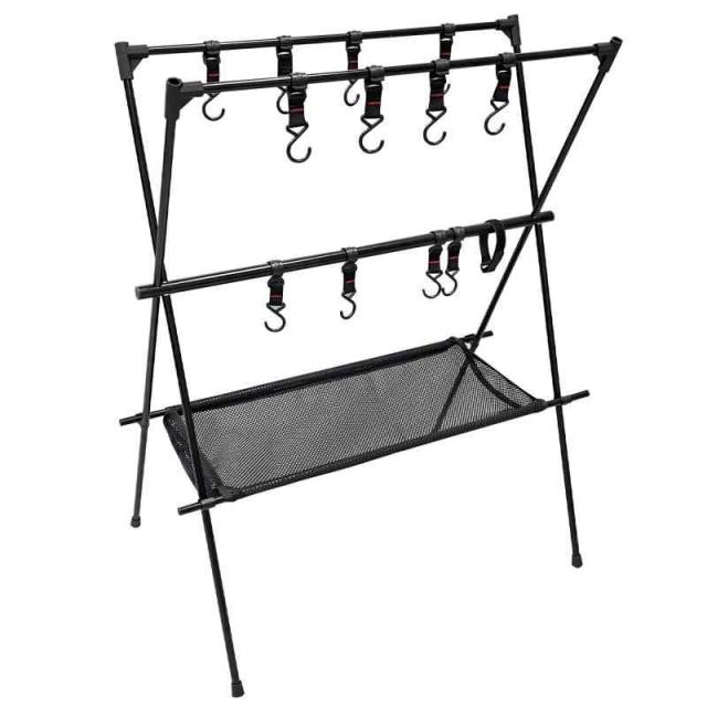 Sutekus キャンプラック ランタンスタンド ハンギング アウトドア ランタンハンガー 掛けフック8個 幅73センチ 高さ90センチ 収納用 ハンガー 物干し ネット 折り畳み 組み立て簡単 キッチン道具 整理 家庭用 登山 アウトドア キャンプ テン