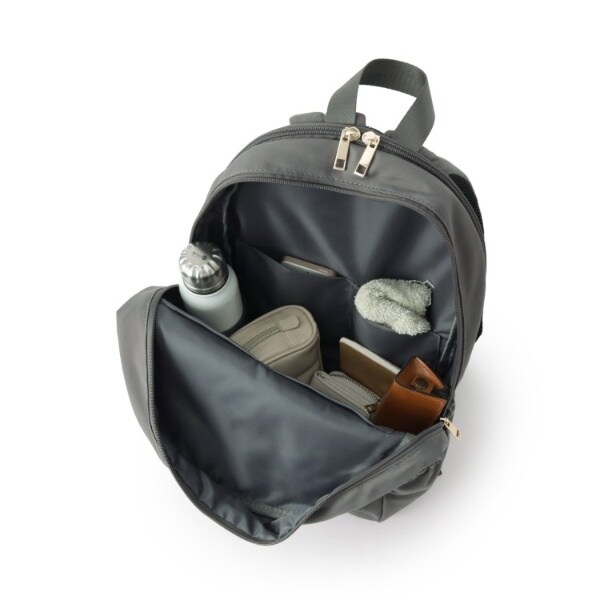 内装はボトルループ付きで、ペットボトルやタンブラー、折りたたみ傘などの倒れやすい荷物も縦型収納が可能です。
