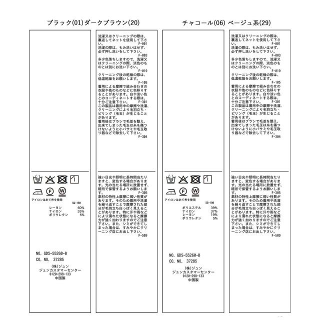 ■素材:ブラック(01)、ブラウン(20):レーヨン 60% ナイロン 35% ポリウレタン 5% チャコール(06)、ベージュ系(29):ポリエステル 39% ナイロン 37% レーヨン 19% ポリウレタン 5%