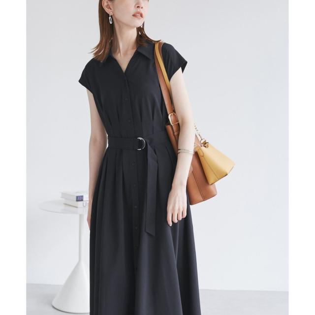 ・フレンチスリーブのレトロなシャツ型ワンピース。