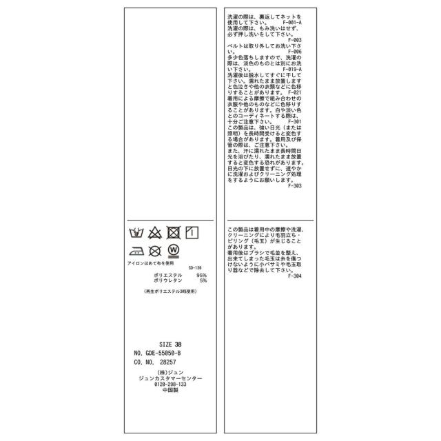 38:総丈116 肩幅51.5 バスト108.6 ウエスト82 その他(袖口)36.7 (ベルト長)105