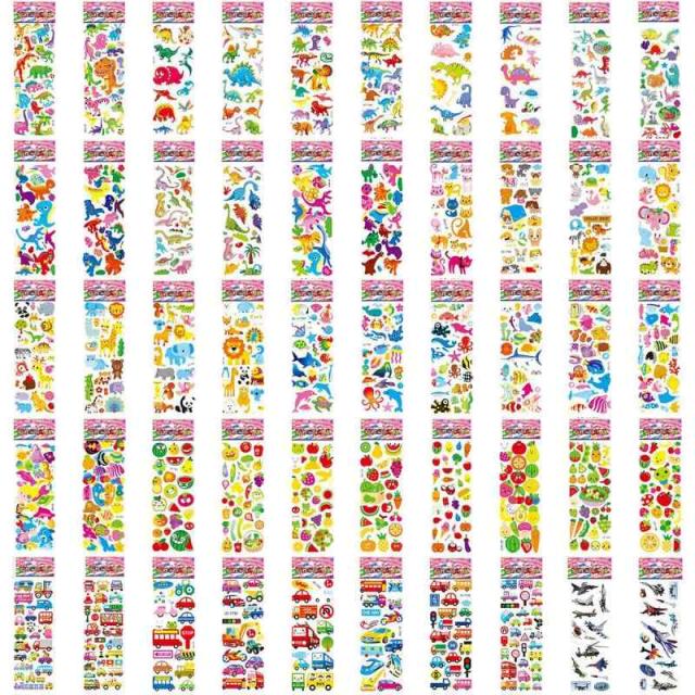 【BEAUTY PLAYER】子供&幼児用3Dシール ご褒美シール ぷくぷくステッカー スクラップブック ブレットジャーナル向け 動物 車 恐竜 深海生物 (50枚)