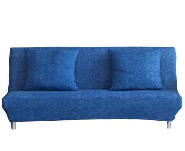 TMVOK ソファーカバー 2人掛け 伸縮素材 ソファベッドカバー 肘なし 柔らかい 犬 猫 傷 防止 クッションカバー2枚付 収納便利 四季通用 (ブルー, L(160-190cm))