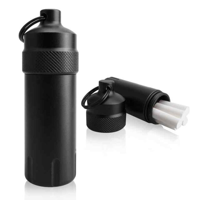 【多機能】 このシリンダー容器は防水性、密閉性が良いです。口のところはネジ型なデザインで、雨の日でも水に落ちても、しっかり内部の物を守れます。更に携帯灰皿としてだけではなく、シガレット、カギ、電池、USBなどの小物を収納できます。
