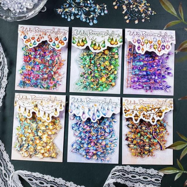 コラージュ 素材 シール 飾り 電球 ランタン オーナメント 装飾 デコレーション 星 ライト ジャンクジャーナル 海外 手帳 アンティーク フレークシール