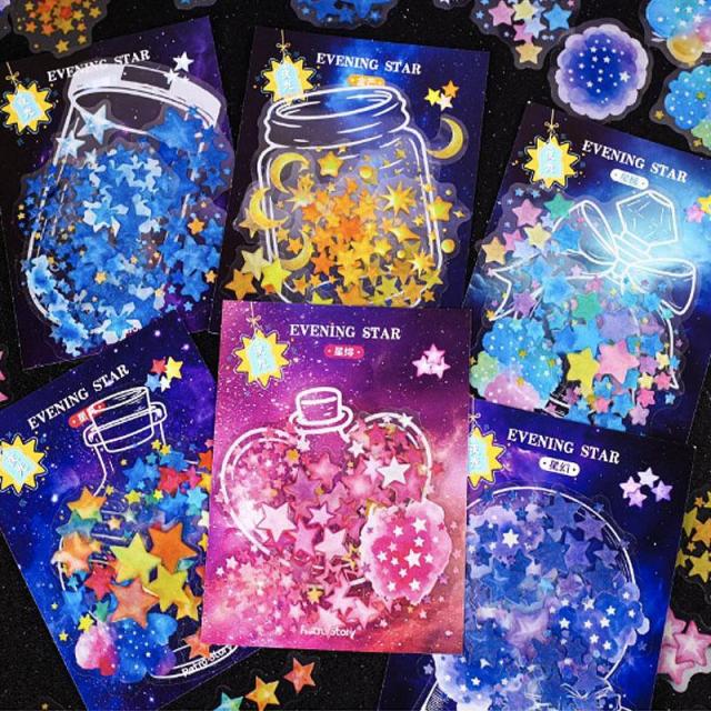 ST674 夜光 蓄光 星型 スター 星 宇宙 キラキラ PET コラージュ素材 コラージュ シール ステッカー 紙もの 手帳 日記 海外 紙モノ 紙物