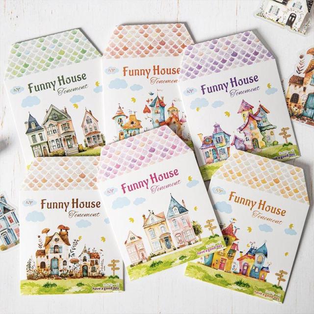 ST678 家 建物 町 街並み 住宅街 建築物 PET コラージュ素材 コラージュ シール ステッカー 紙もの 手帳 日記 海外 紙モノ 紙物