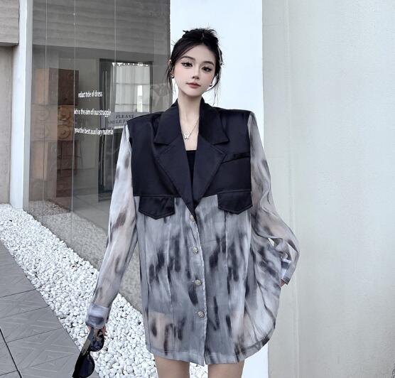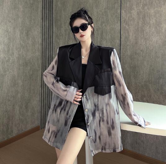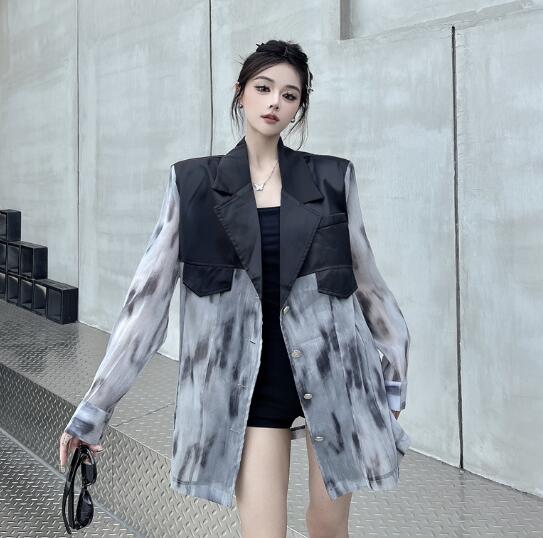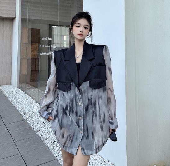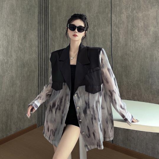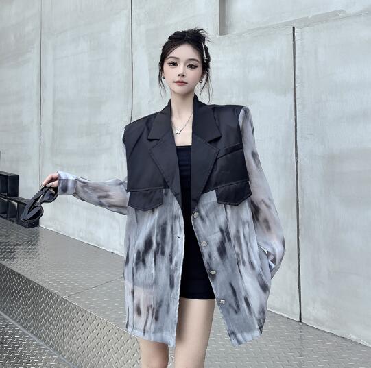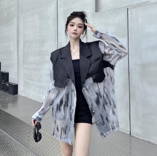 マーブルモード系 切替長袖 ビッグシルエット ゆめかわいい 奇抜 派手 ジャケット トップスダンス 衣装 ヒップホップ コスチューム 韓国ファッション 個性的 服 原宿系オーバーサイズ 大きいサイズ