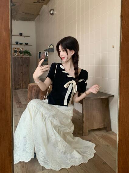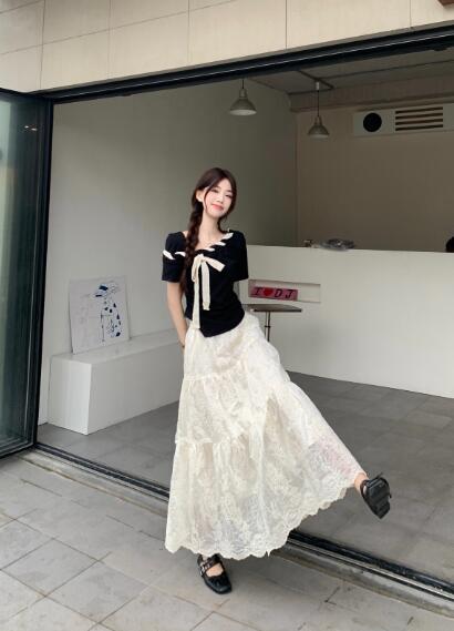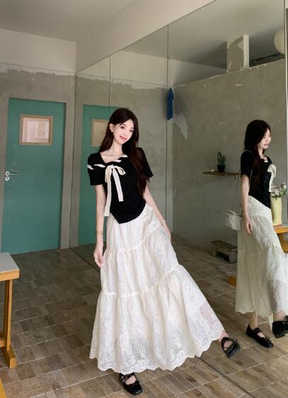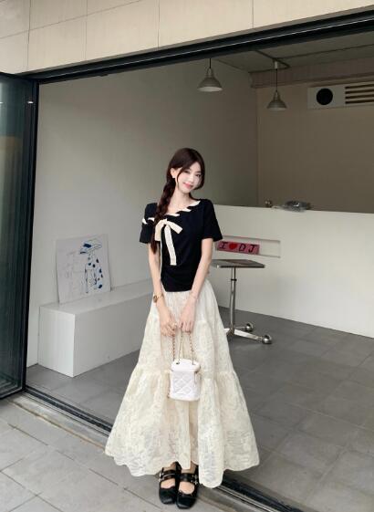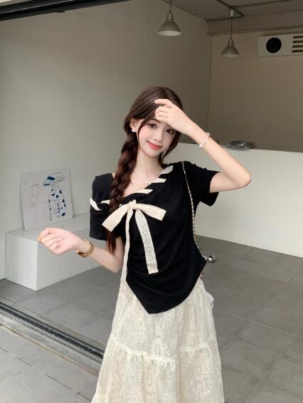 リボンアシンメトリーデザイントップスカットソーカジュアル半袖レディースガールズストリート韓国おしゃれ奇抜派手大人個性的かわいい