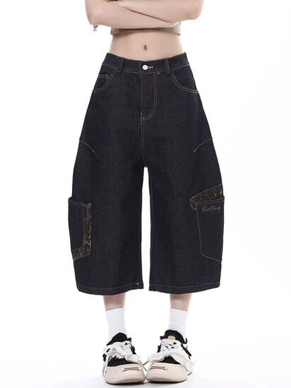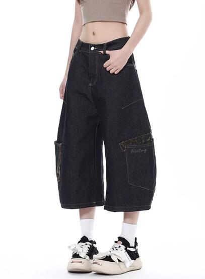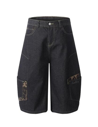 ヒョウ柄レオパード柄デニムズボンボトムスパンツジーンズジーパン半ズボン膝上ワイド太いシンプルダンス衣装ヒップホップHIPHOPレディースガールズストリート 奇抜派手韓国ビッグ大きいサイズ