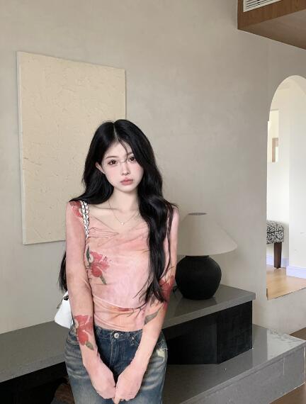 シースルートップスカットソー長袖透け感Tシャツインナー薄手 ダンス衣装ヒップホップHIPHOPレディースガールズストリート個性的奇抜派手韓国おしゃれかっこいい