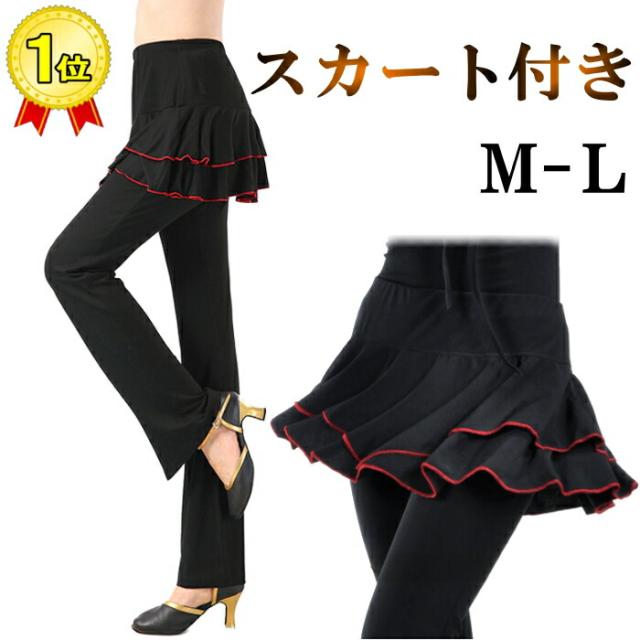 スカート付き パンツ レディース ダンスパンツ ヨガパンツ 体型カバー ミニスカート ジャージ ベリーダンス ブーツカット美脚パンツ フィットネス ピラティス レッスンパ 衣装