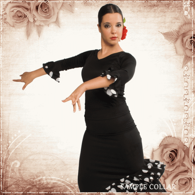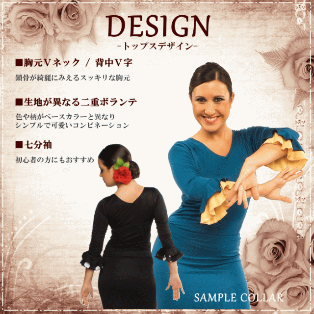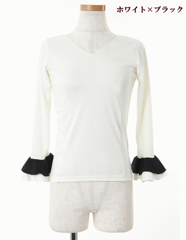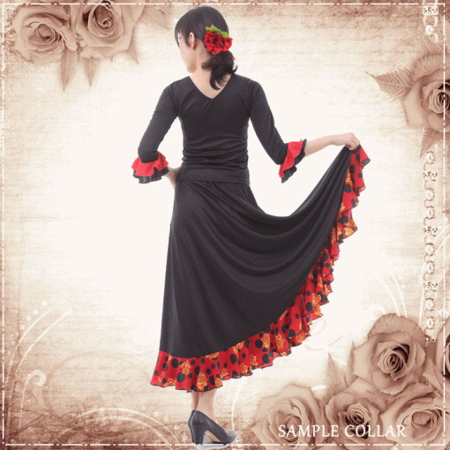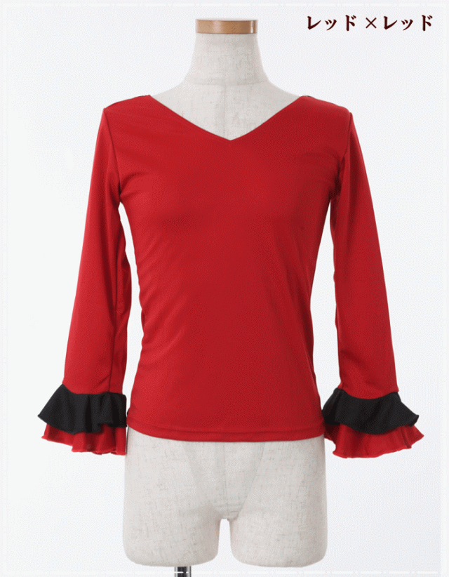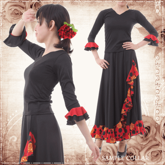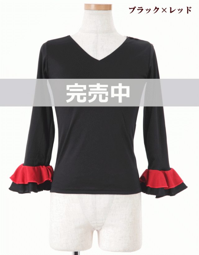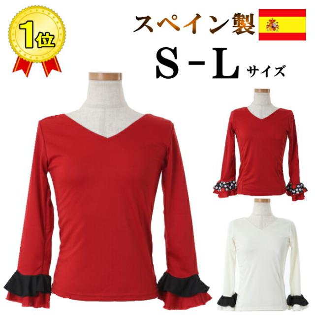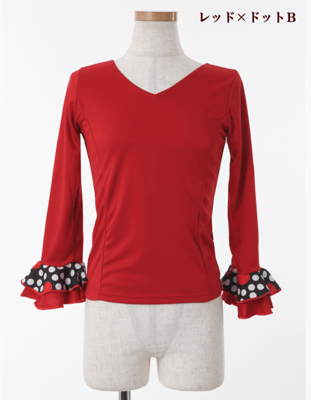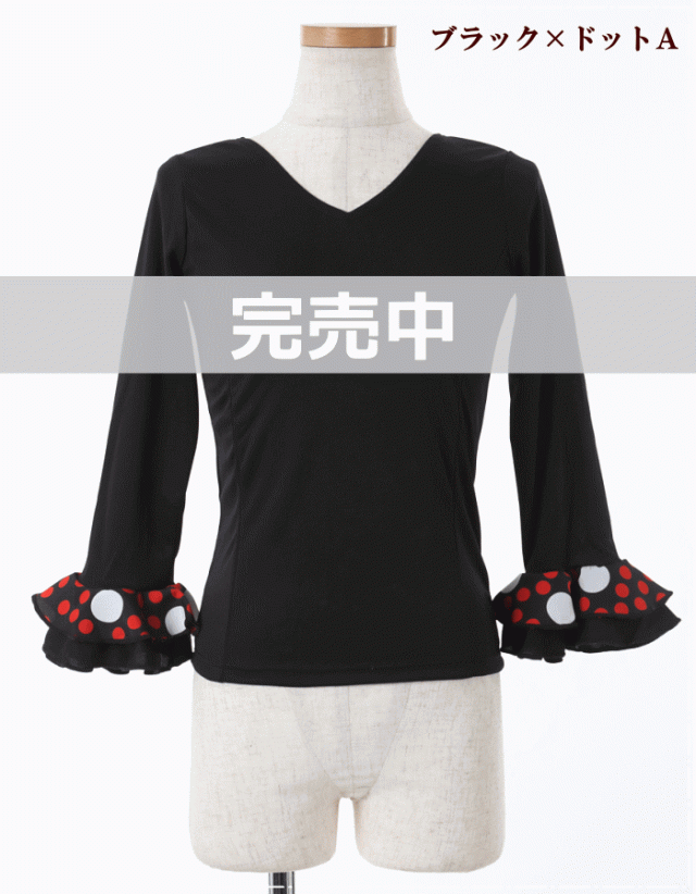 ダンス 衣装 トップス フラメンコ 七 トップス Tシャツ カットソー 通販 S-Mサイズ M-Lサイズ ブラック×袖レッド レッド×袖ブラック ホワイト×袖ブラック ブラック×袖ドットA柄 レッド×袖ドッドB柄