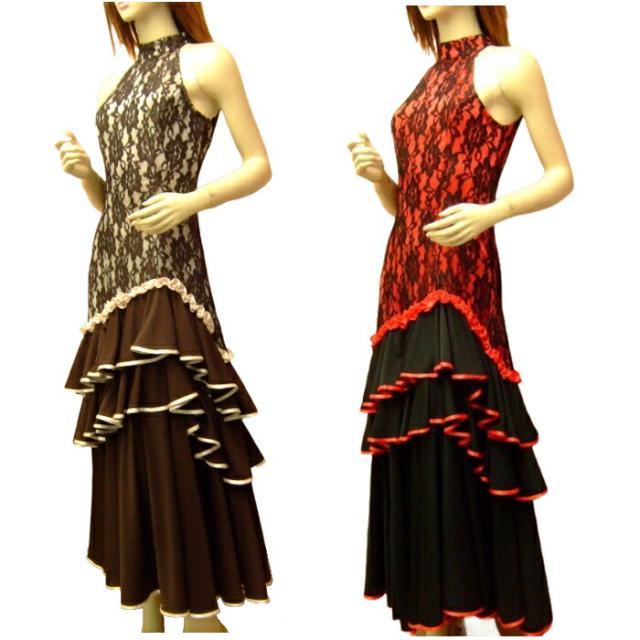 フラメンコ衣装 ワンピース スカート 体操 ダンス フラメンコ ワンピース ドレス 早い者勝ち ブラウン レッド