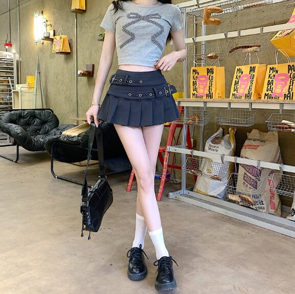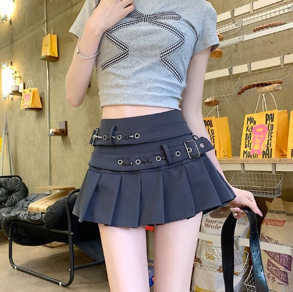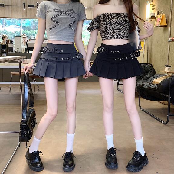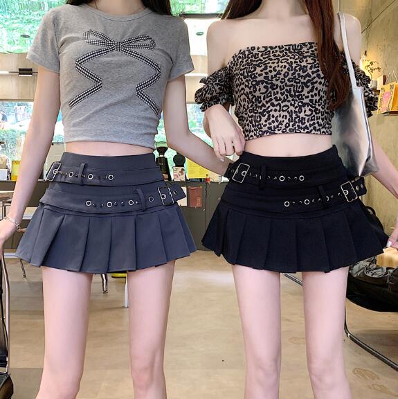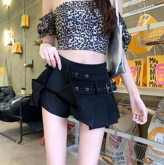 ベルトキュロットスカパン2色黒ブラックグレーミニスカミニ膝上ひざ丈ハイウエストダンス衣装ヒップホップHIPHOPレディースガールズストリートステージ奇抜派手個性的