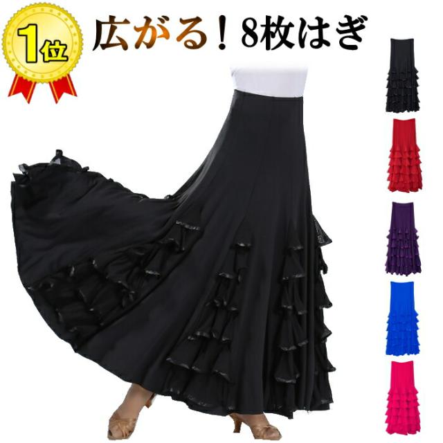 社交ダンス ダンス スカート ロングスカート 広がる 全円 サーキュラー ファルダ 8枚はぎ ダンス衣装 ラテンダンス フラメンコ パソドブレ ベリーダンス ジプシー オリエンタル エジ ヒップホップ