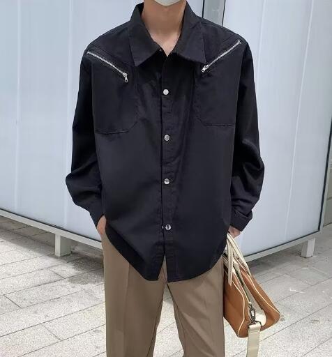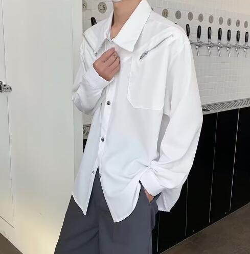 ジップアップブラウス長袖シャツトップスカットソー前開きボタン黒ブラックホワイト白大きいサイズビッグダンス衣装ヒップホップHIPHOPレディースメンズガールズストリート奇抜個性的韓国総柄柄シャツ派手
