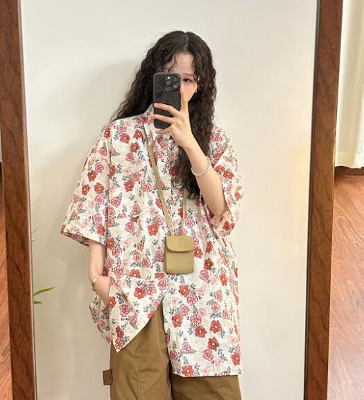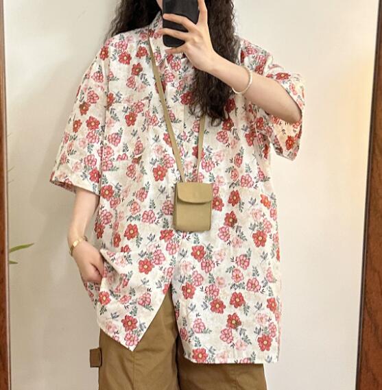 レトロ花柄総柄半袖トップスシャツブラウ トップス シャツ ブラウス 超目玉商品 M L XL