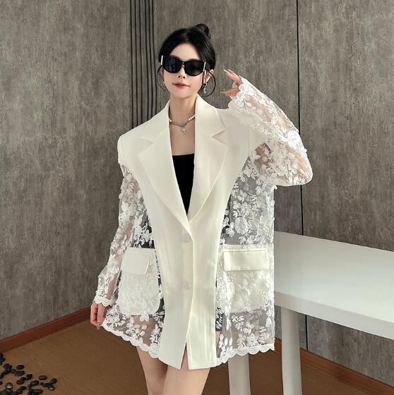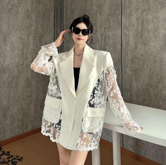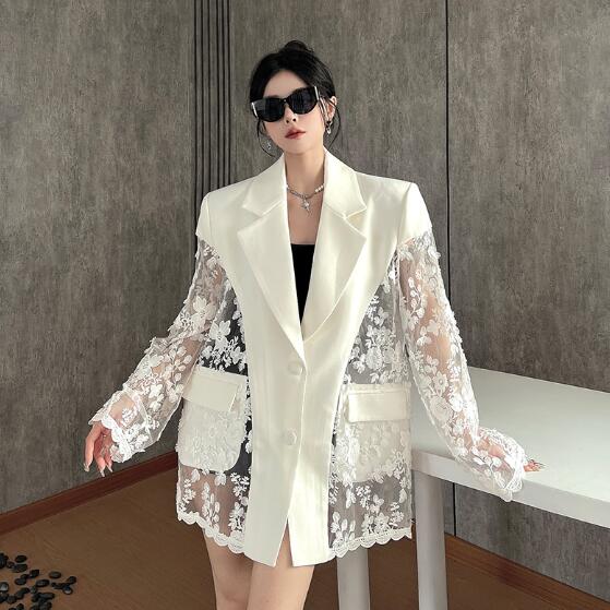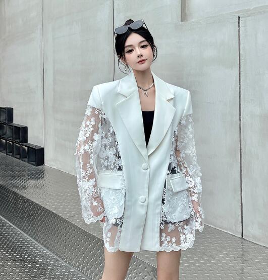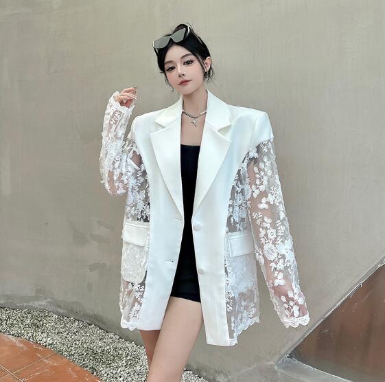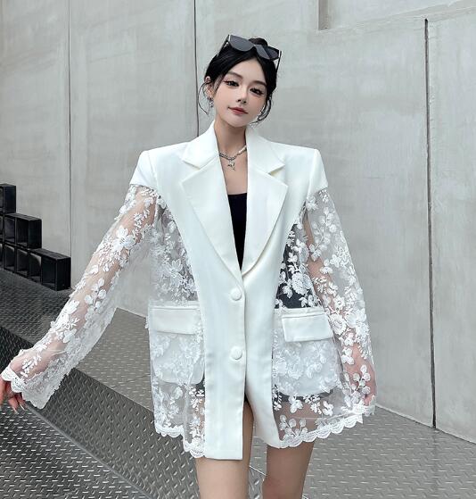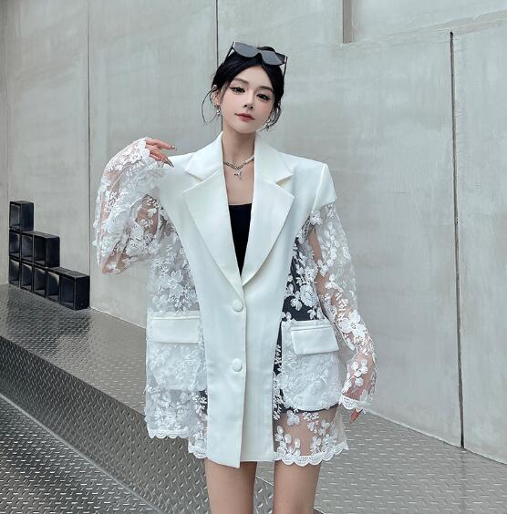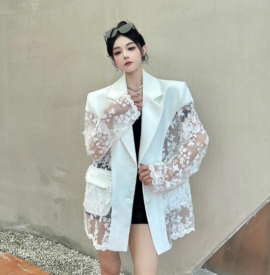モード系 レース切替長袖 ビッグシルエット ゆめかわいい 奇抜 派手 ジャケット トップスダンス 衣装 ヒップホップ コスチューム 韓国ファッション 大きいサイズ 服 原宿系オーバーサイズ レ 個性的