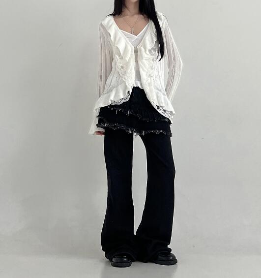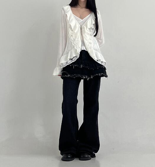 重ね着風ジーンズジーパン パンツズボン ボトムス パンツ 超目玉商品 S M L