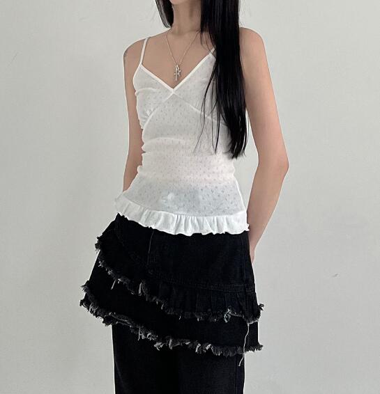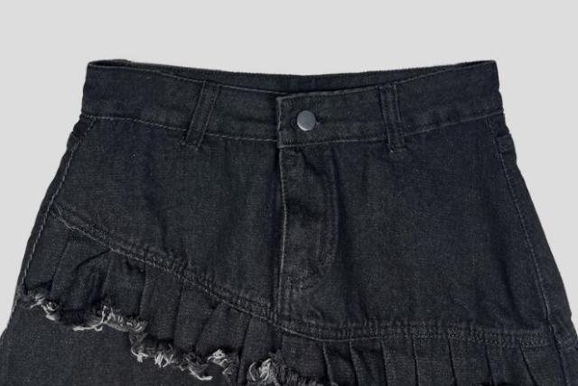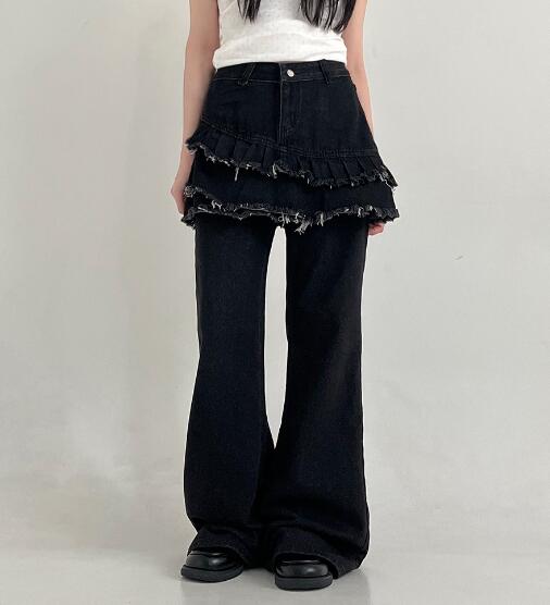 重ね着風ジーンズジーパン パンツズボンボトムスポケットデニム太い太めダンス衣装ヒップホップHIPHOPレディースガールズストリート大きいサイズかわいい個性的韓国ファッション