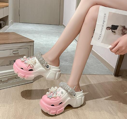 パールマーブル厚底サンダル かわいい 靴 新作 ピンク ブラック 36 38 40