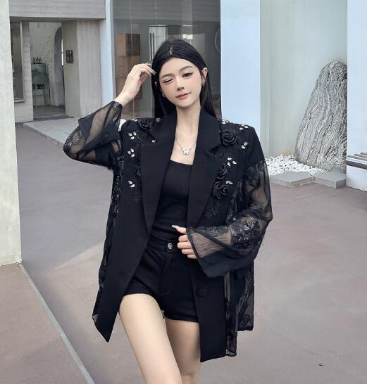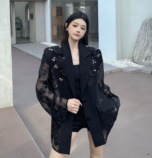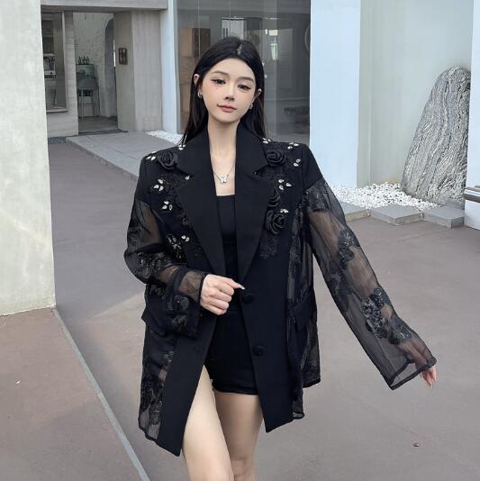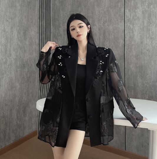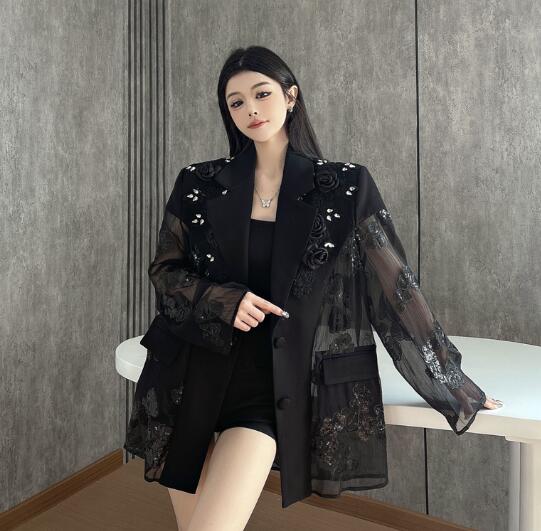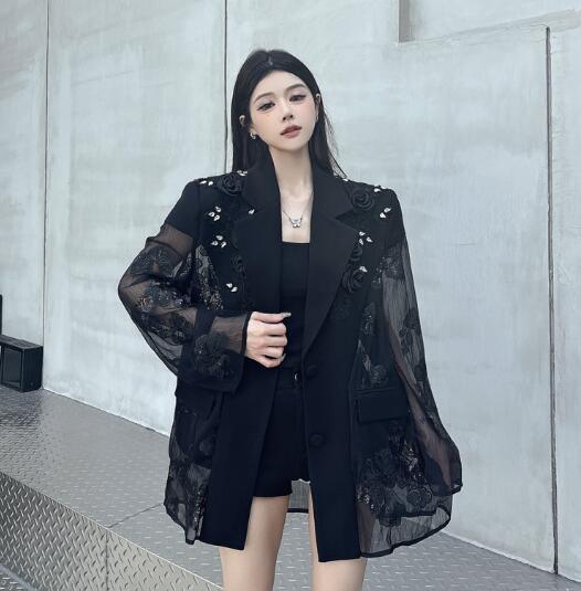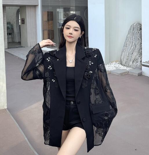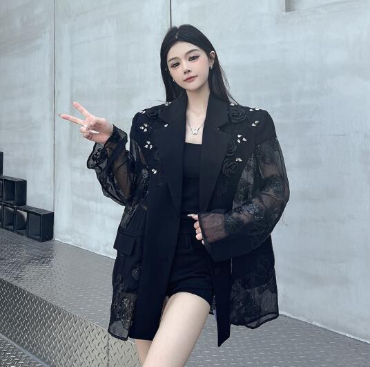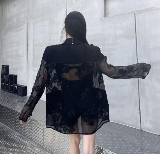 モード系 ビジュー長袖透け感あり ビッグシルエット ゆめかわいい 奇抜 派手 ジャケット トップスダンス 衣装 ヒップホップ コスチューム 韓国ファッション 個性的 服 原宿系オーバーサ 大きいサイズ