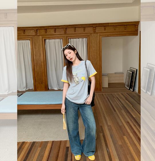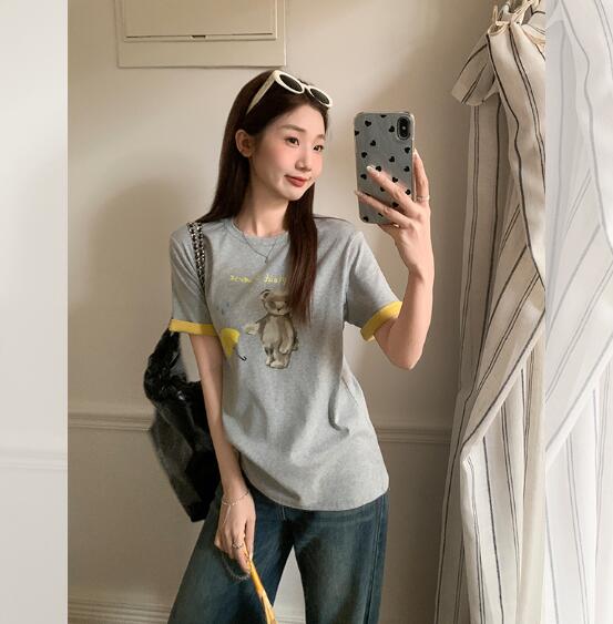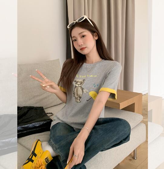 くまベアバイカラートップスカットソーカジュアルゆったりダンス衣装ヒップホップHIPHOPレディースガールズストリート韓国おしゃれ奇抜派手大人個性的かわいい