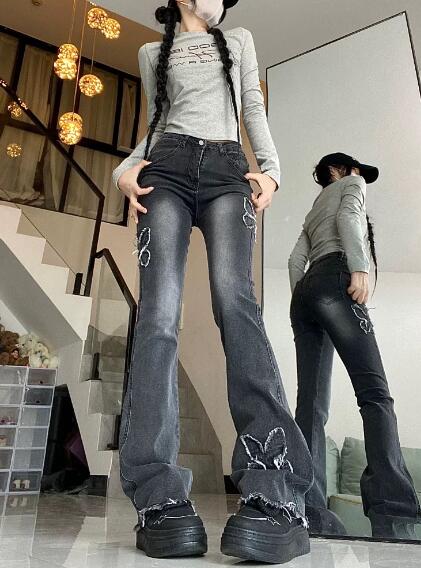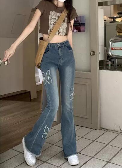 ちょうちょうフレアジーンズジーパン パ レディースファッション 超目玉商品 ブラックグレー ブルー S M L XL