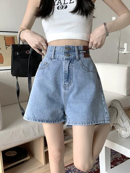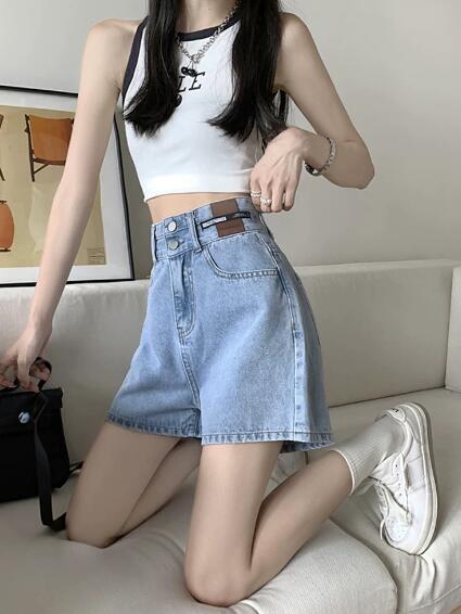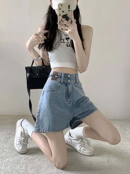 デニムズボンボトムスパンツジーンズジーパン半ズボン膝上ワイド太いシンプルダンス衣装ヒップホップHIPHOPレディースガールズストリート奇抜派手韓国ビッグ大きいサイズ