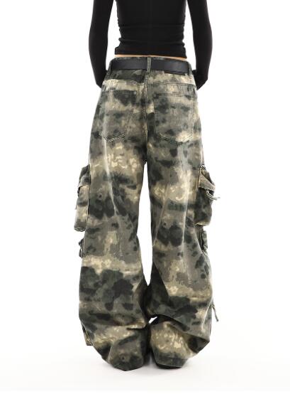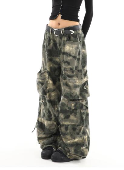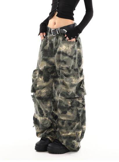 カーゴパンツ迷彩ミリタリージーパン パンツズボンボトムスポケットデニム太い太めダンス衣装ヒップホップHIPHOPレディースガールズストリート大きいサイズかっこいい個性的韓国ファッション