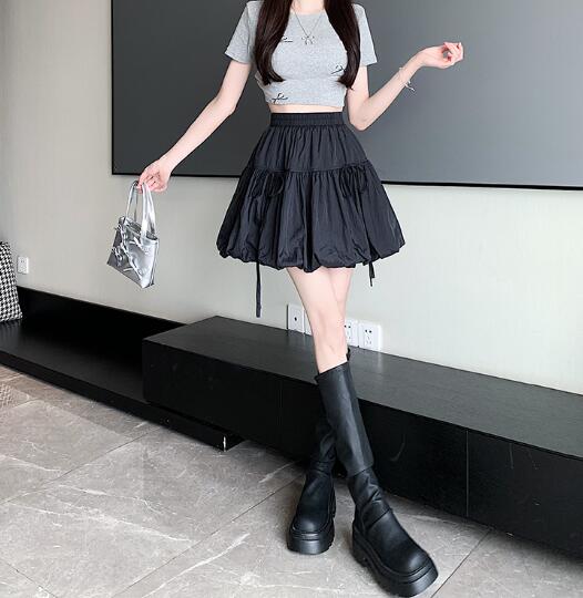 リボンスカートキュロットスカパンシンプルハイウエストミニスカミニ膝上ひざ丈ボトムスダンス衣装ヒップホップHIPHOPレディースガールズkpop韓国ストリート個性的奇抜かわいい