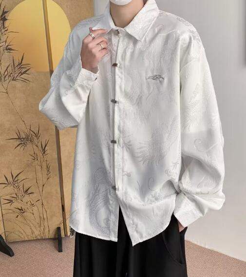 チャイナボタン龍柄シャツブラウストップ トップス シャツ ブラウス 新登場! ブラック ホワイト M L XL 2XL