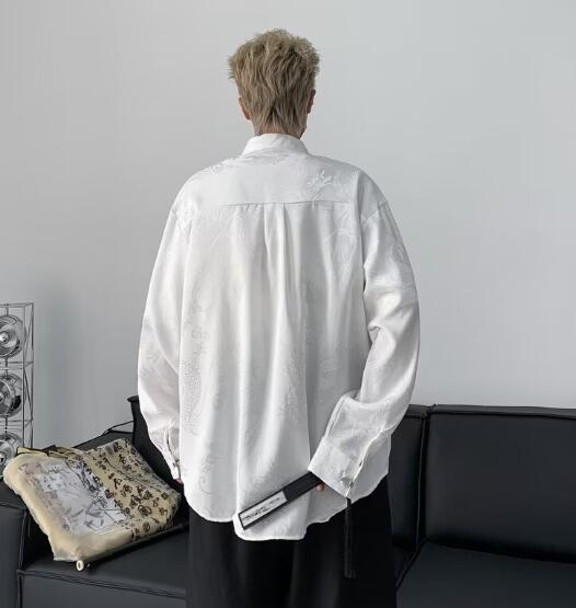 チャイナボタン龍柄シャツブラウストップスカットソー長袖前開きゆったり大きいサイズダンス衣装ヒップホップHIPHOPレディースメンズガールズ大人韓国奇抜派手おしゃれ総柄