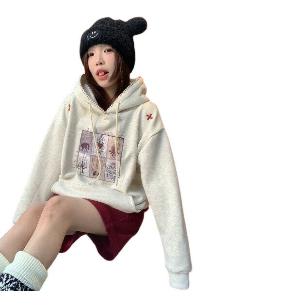 フードフーディートレーナーパーカー刺繍裏起毛厚手長袖長めスウェットトップスカットソー大きいサイズビッグゆったりダンス衣装ヒップホップHIPHOPレディースガールズストリート韓国おしゃれ奇抜派手個性的