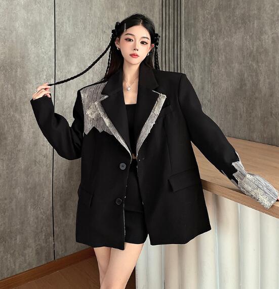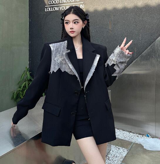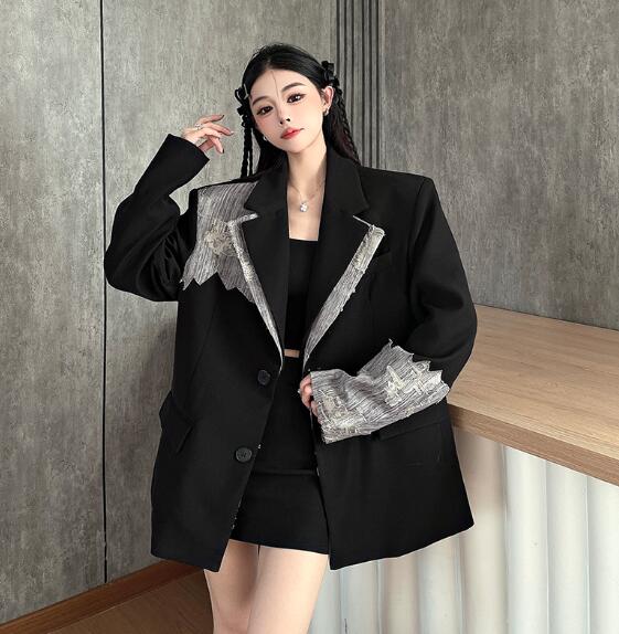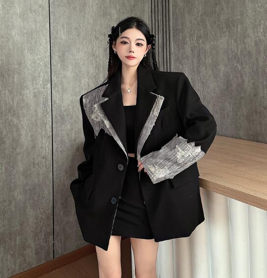 モード系 レース切替長袖ビッグシルエット ゆめかわいい 奇抜 派手 ジャケット ダンス 衣装 ヒップホップ コスチューム 韓国ファッション 大きいサイズ 服 原宿系オーバーサイズ レディースガ 個性的
