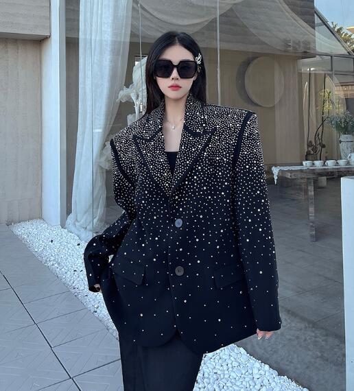 モード系 ビジューキラキラ長袖ビッグシルエット ゆめかわいい 奇抜 派手 ジャケット ダンス 衣装 ヒップホップ コスチューム 韓国ファッション 大きいサイズ 服 原宿系オーバーサイズ レディ 個性的