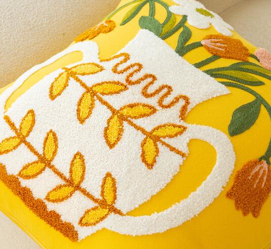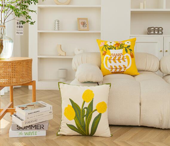 刺繍チューリップクッション3デザインクッションカバーカバーフラワーもこもこ大きい大きめ45cm×45cm北欧おしゃれ可愛いデザイン四角正方形韓国雑貨インテリア北欧