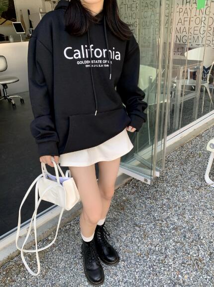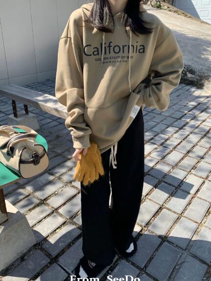 フードフーディートレーナー裏起毛ロゴ長袖スウェットトップスカットソー大きいサイズビッグゆったりダンス衣装ヒップホップHIPHOPレディースガールズストリート韓国おしゃれ奇抜派手個性的