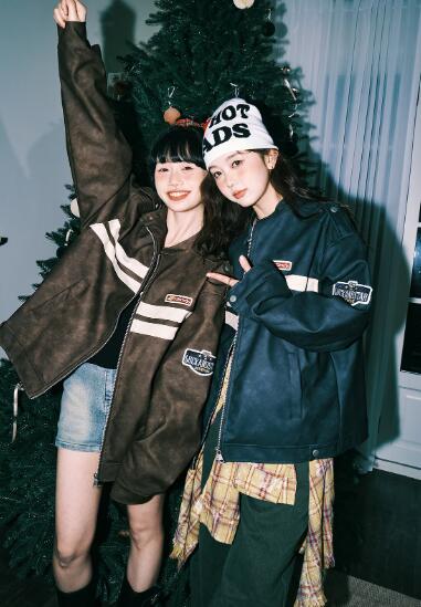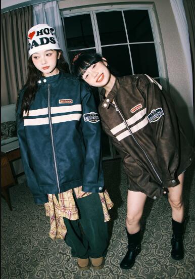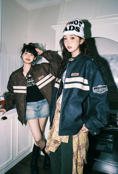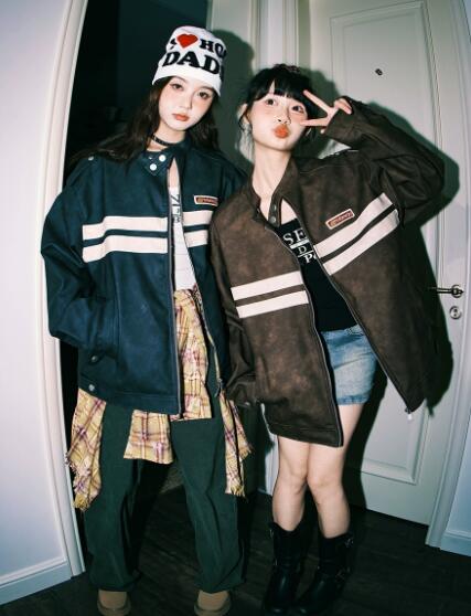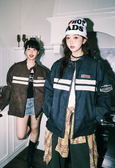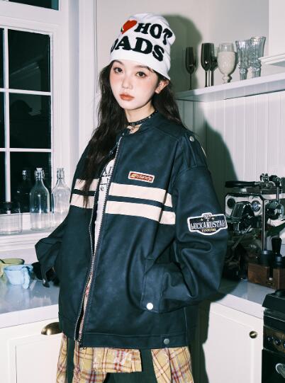 ラインロゴレザーベースボールジャケットスタジャンスカジャンアウタージャケットブルゾンジャンパーヒップホップHIPHOP韓国ビッグ大きいサイズストリートスケーターレディースメンズガールズ韓国系ファッショ