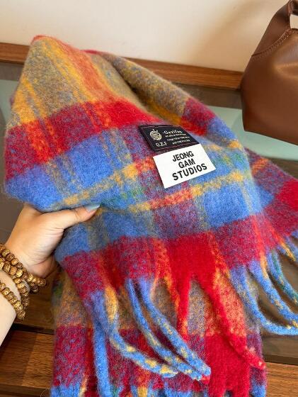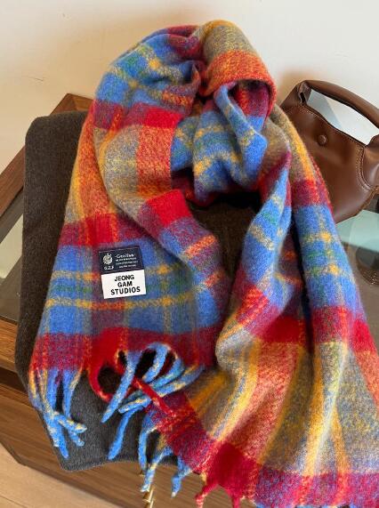マフラー220×50cmおしゃれカラフル韓国可愛い長い大きいフリンジチェック大判レディースガールズカジュアル厚手ブロックチェックボーダー防寒学生通学通勤ふんわりふわふわ柔らかいストール