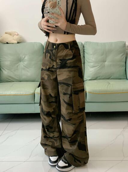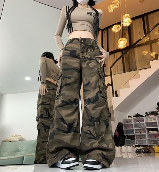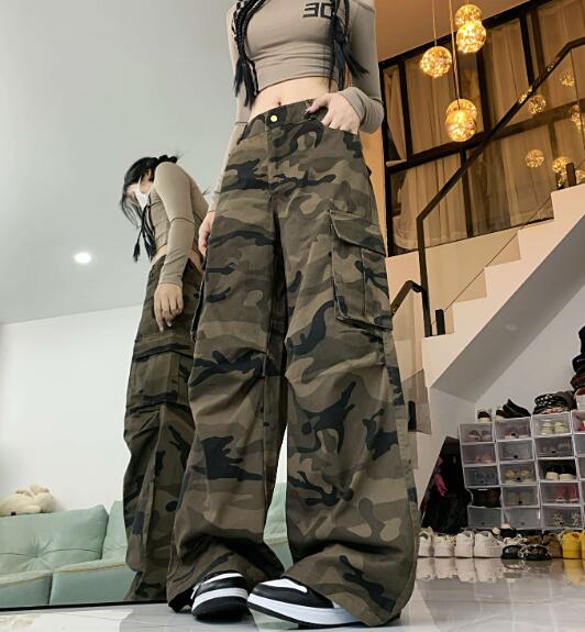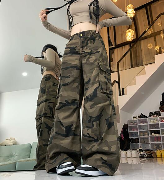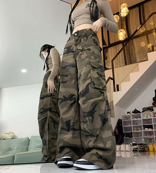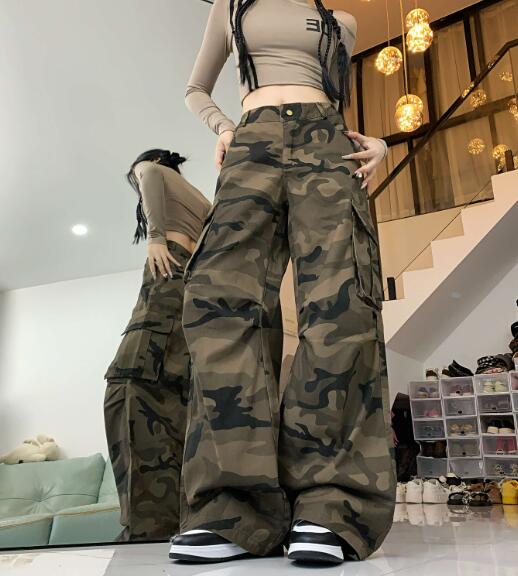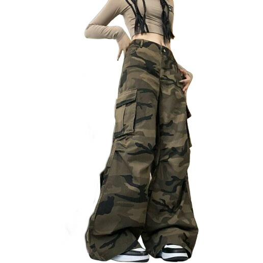 迷彩ミリタリーカーゴパンツパンツズボンボトムススウェット ロングワイド太い太め大きいサイズビッグゆったり ポケットダンス衣装ヒップホップHIPHOPレディースガールズ個性的奇抜かっこいい