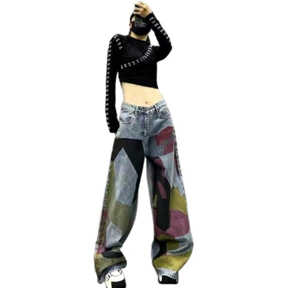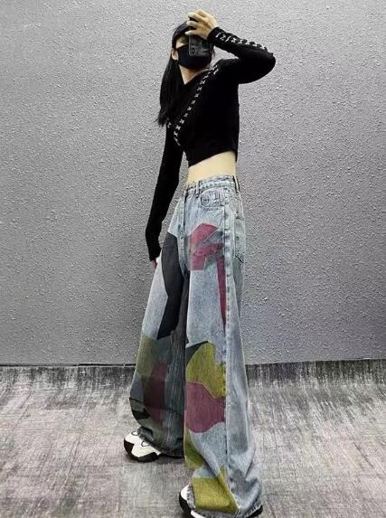 カラフルジーンズジーパン パンツズボンボトムスポケットデニムダンス衣装ヒップホップHIPHOPレディースガールズストリート大きいサイズかっこいい個性的韓国ファッション